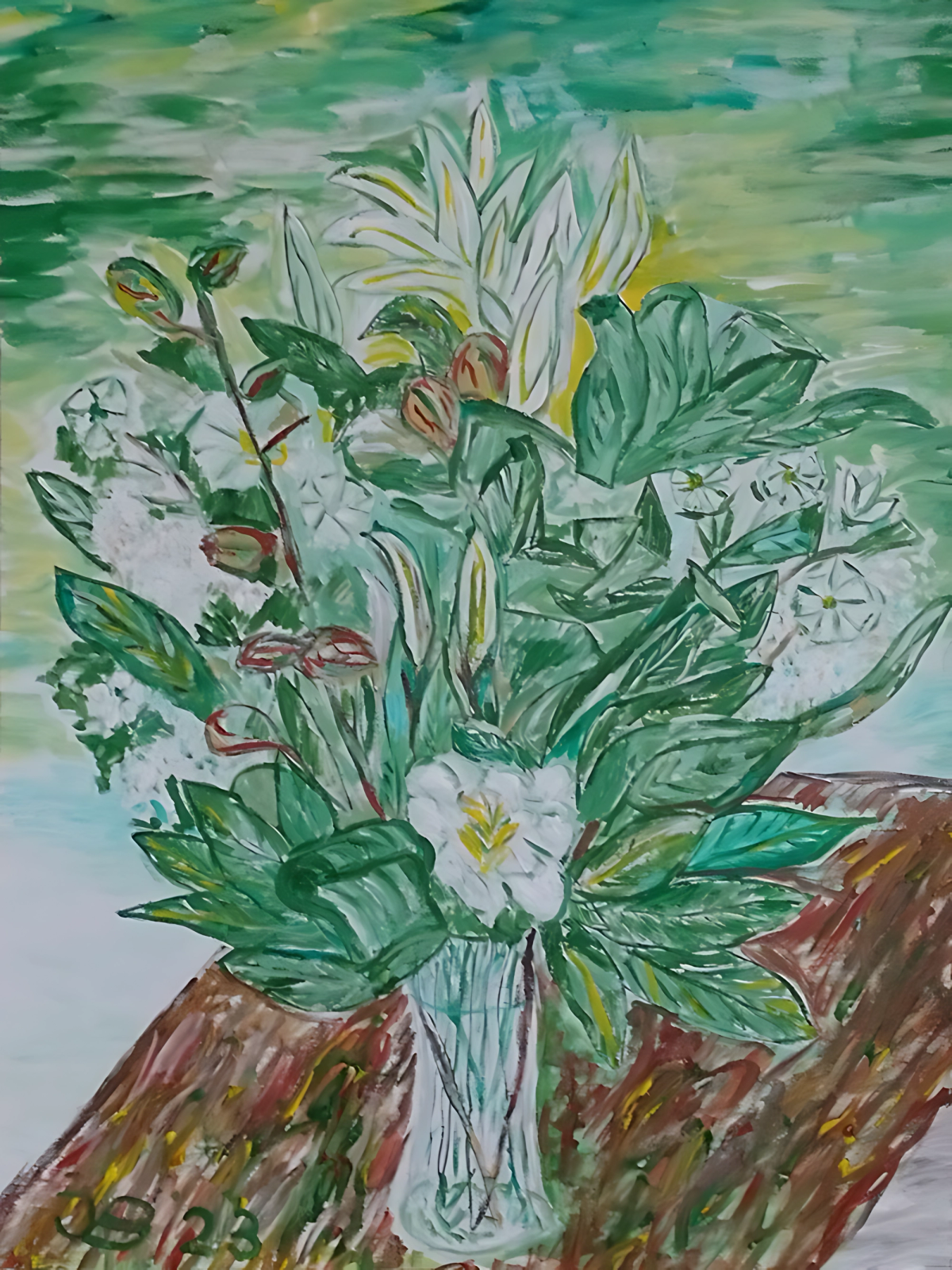 Wit boeket in glazen vaas